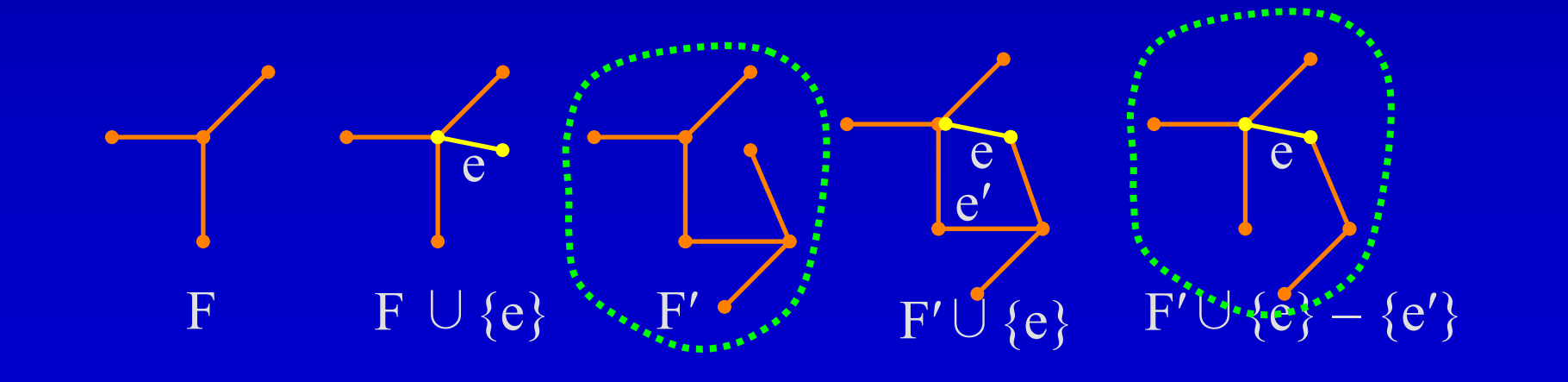 그리고 반복중에 선택된 간선의 집합을 F라하고 이 F는 Promising하다고 하면 우리는 F에 특정 간선 e가 추가될 때