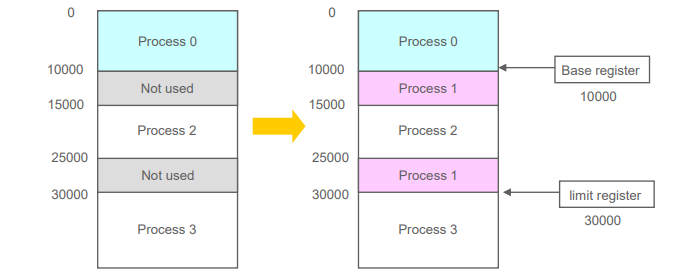 한 예시로 base register와 limit register를 사용하는 예시가 있다.